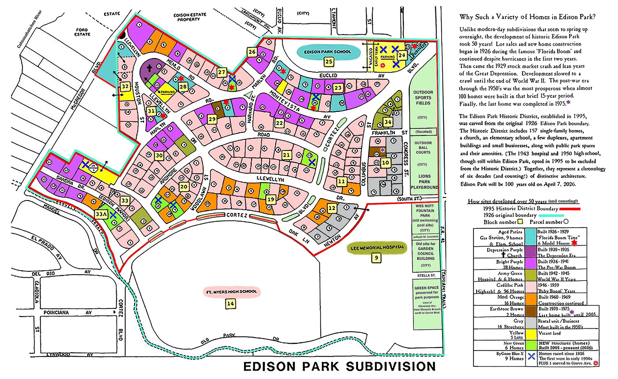 For New Homes Development Company, a deed of restrictions was filed which stated that …“all buildings are to be of Moorish, Spanish and Italian architecture… or an American modification”. Later, the deed restrictions were amended to include “variations in harmony with the surroundings”.